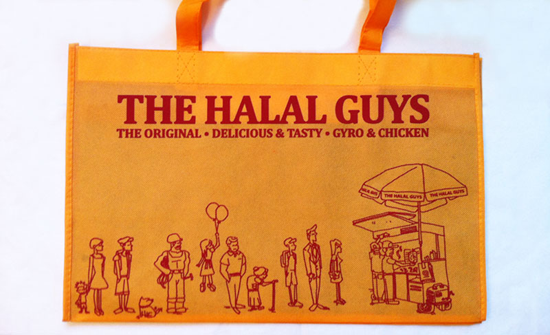 Ever wonder where to get a full fresh meal in New York City for under $10? If you haven't already yet, check out the awesome food our friends from The Halal Guys are serving at 53rd and 6th. We partnered up with the guys not too long ago to create an eco-friendly tote for your food-shopping convenience. Featured on Midtown Lunch, stop by one of these summer days and inquire about the bags to get one before the lines pile up!